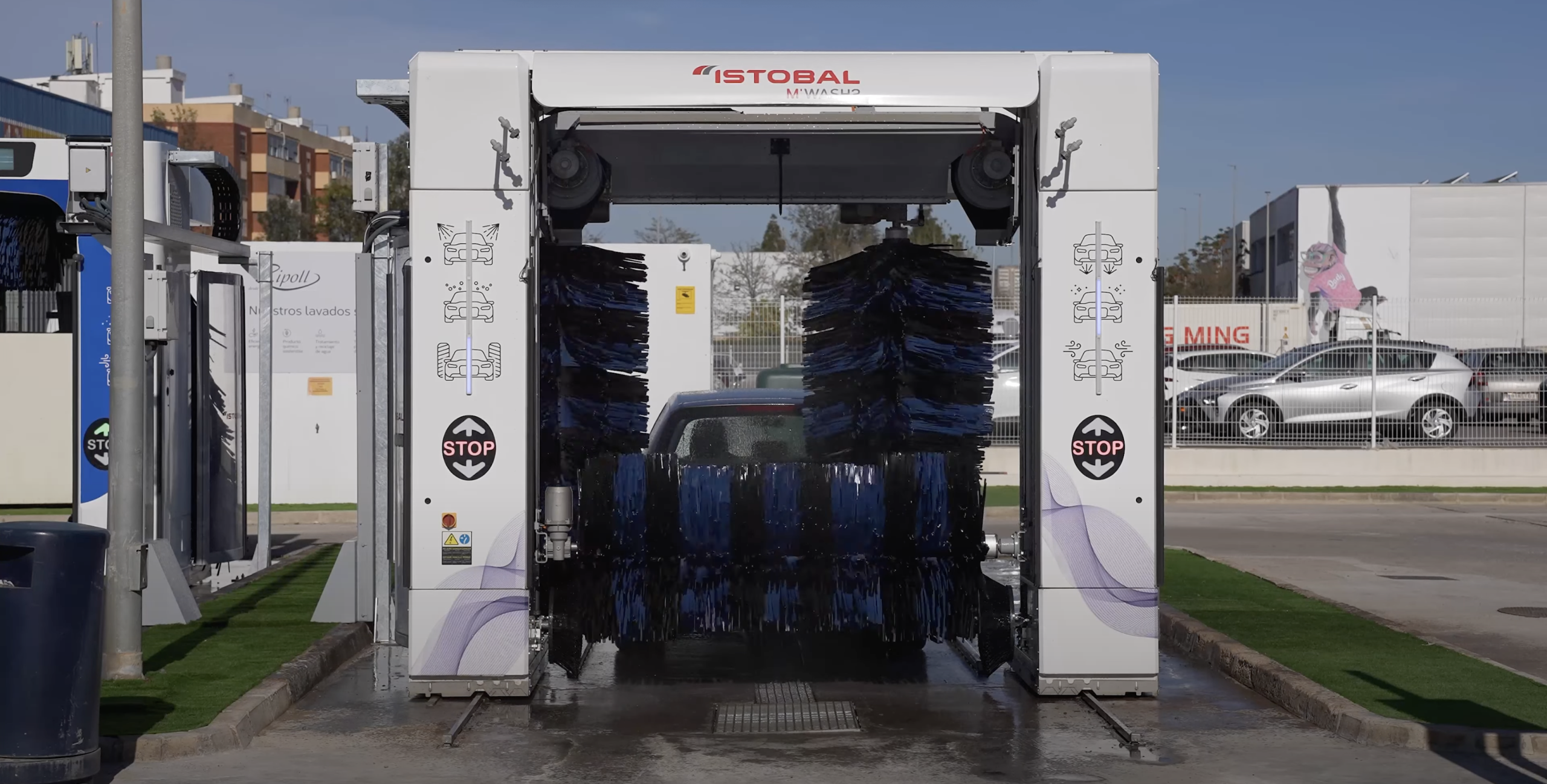 Etape de spalare: spalare sasiu, aplicare spuma activa, spalare cu perii si sampon, clatire, aplicare ceara, aplicare aditiv uscare, uscare